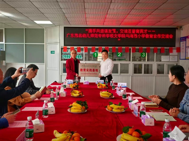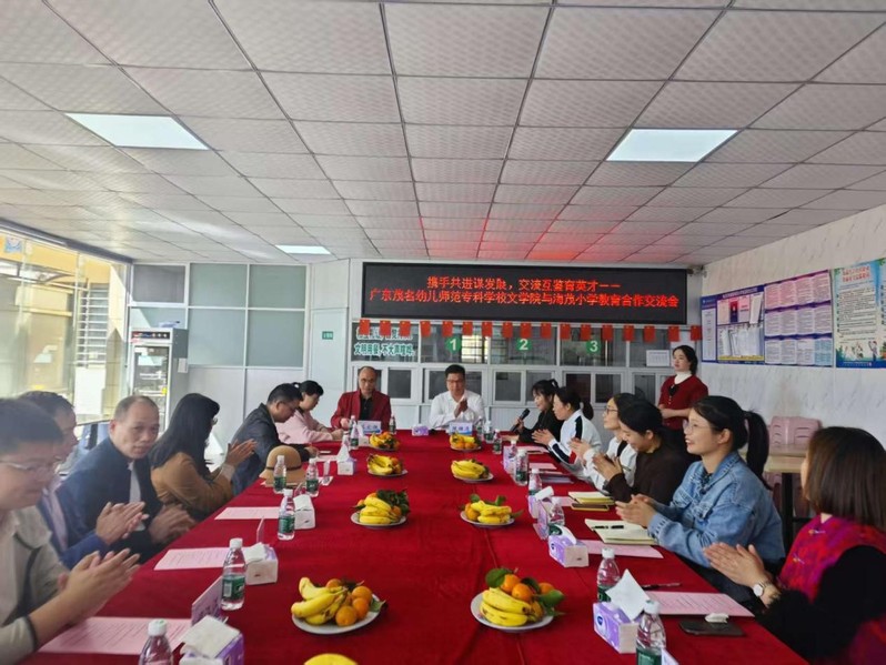 1128日下午,文学院率先与茂名市电白区电城镇海茂小学开启教育合作交流的序幕。本次交流会以携手共进谋发展,交流互鉴育英才为主题,在海茂小学校园餐厅隆重举行。文学院党总支书记苏文胜、党总支副书记蓝嫦、综合办公室主任杨泽松、教研室主任、骨干教师与海茂小学领导班子成员、各学科骨干教师代表共同参与了活动。