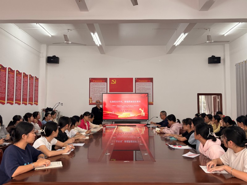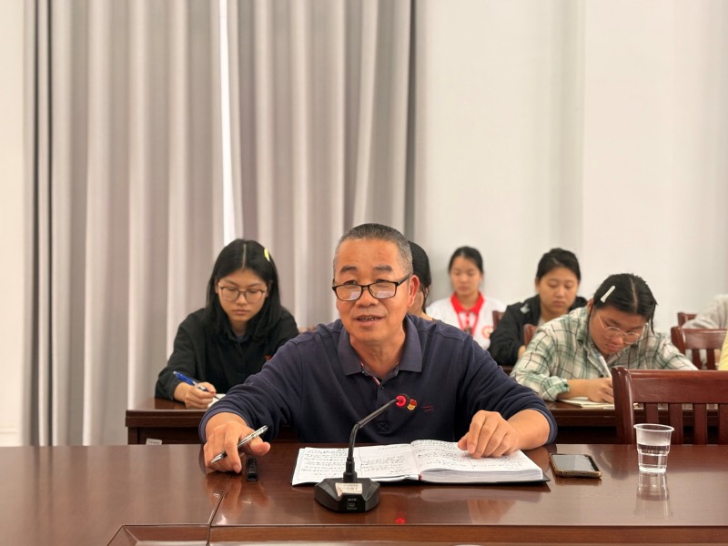 2025年12月22日下午,学校党委委员、学校工会主席陈德同志到文学院宣讲“弘扬优良作风,做强国建设好青年”专题党课。文学院党总支部书记苏文胜同志主持。文学院辅导员、学生预备党员及入党积极分子参加学习。